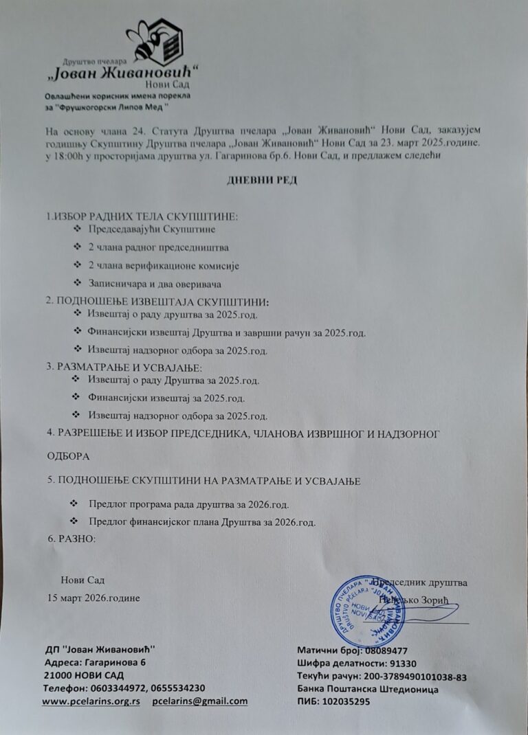 Za staratelja ovog velikog pčelonjaka, postavljen je izvesni Slaviša Dedin iz Titela. Kako on nije bio obučen za pčelarstvo, a bilo je mnogo košnica, da bi se društva sačuvala od propadanja, rasprodata su pojedincima. U to vreme većinu košnica su kupili železničari što je uslovilo da se osnuje Železnička pčelarska zadruga. Ona je okupljala radnike i službenike železnice. Predsednik zadruge bio je Ilija Kostić, a u radu ove pčelarske organizacije ostaće zapamćeni: pravnik Stojan Dragojlov, potom Kukić, Šiljkut, Mirosavljević, Stanković, Kragujev, Mikić, Popić, Doroslovački, Stefanović i drugi.